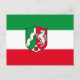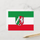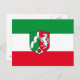 Cartão postal com bandeira variante da Renânia do Norte-Vestefália (Renânia do Norte-Vestefália), design com tricolor horizontal verde, branco e vermelho; com um escudo com ilustração do rio e do cavalo no centro