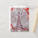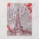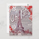 Esta imagem vintage tem a Torre Eiffel em um fundo cinza e vermelho profundo. Há flores brancas e o texto diz Oh, Paris. Veja minha loja para produtos compatíveis com este design.