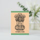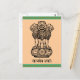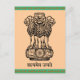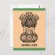 O antigo mantra de Mundaka Upanishad "a verdade sozinha triunfa" escrito em Sânscrito. O emblema da Índia, composto por 3 leões num pedestal com o mantra escrito abaixo dele