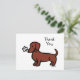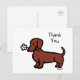 Cartão postal de agradecimento Red Smooth Haired Dachshund Tiny Flower Heart Dachshund para fãs de Doxie. Cartoon de cachorro fofo criado por Naomi Ochiai do Japão. O Doxie está entregando uma Flor Minúscula na boca para você.