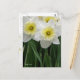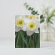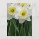 Daffodilos brancos e amarelos se destacam contra a folhagem verde-escura.