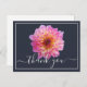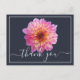 Cartão Postal Dália Amarela e Rosa Fundo Azul-Marinho Obrigado
