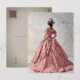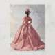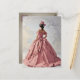 Uma dama vitoriana bonita personalizada em um lindo vestido rosa antigo, cartão postal. Aniversários, cartões de visita, artesanato e ideias de scrapbooking.