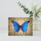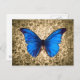 Design de uma bela, grande, borboleta azul-monarca da meia-noite contra um fundo de cor damasco vintage. Esta design de arte mostra a cor vibrante natural da borboleta e tem a sensação retrorativa de vintagem.