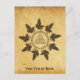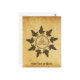 Nove corvos vivos (Corvus corax) circulam em torno de um anel Nórdico/Celta. Um triquetra, figura triangular de três arcos entrelaçados, aparece no centro. Tudo é sobreposto a uma imagem antiga de fundo de papel, dando-lhe uma sensação medieval. Personalize adicionando seu próprio texto.