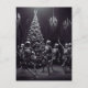 Cartão Postal dança macabra natal Skeletons em volta da árvore