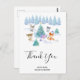Obrigado postal com uma cena de Natal esquimática. Felizes animais florestais dançando em volta de uma árvore de Natal decorada. Design de aquarela festiva.