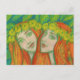 Cartão Postal "Dandelions", pintura pastosa de verão, menina ave