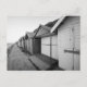 Cartaz preto e branco impressionante com cabanas de praia charmosas em Cromer, na costa norte do Norfolk.