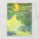 Cartão-postal Monet Sunset Waterlily. Petróleo na canvas desde 1907. O impressionista Claude Monet foi um dos mais famosos do impressionista e permanece amado por suas pinturas com lírio-d'água. Waterlilians 1907 é uma das pinturas anteriores de Monet, com lírios, e apresenta o sol belamente sobre as suas lagoas em Giverny, capturando os ricos amarelos da cena.