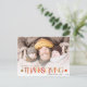 Um elegante design de cartão com fotos de Ação de Graças com cores de queda. Você pode carregar sua própria foto e escrever uma mensagem de saudação pessoal no verso. O texto pode ser editado para fonte, cor e posicionamento.