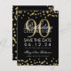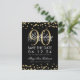 Design de "90 Festa de aniversário" elegante com Dourado Faux Glitter Confetti Black e nome personalizado e texto de detalhes. Fácil de usar e fácil de personalizar. Faça o pedido hoje!