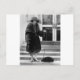 Foto de moda feminina de velha 1920 com casaco de pelo e chapéu grande com o que parece ser um gambá numa coleira.
