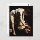 Uma representação de David e Golias por Michelangelo Merisi da Caravaggio. Passo a citar: Então David triunfou sobre o Filisteu com uma linga e uma pedra; sem uma espada na mão, ele derrubou o Filisteu e o matou. David fugiu e o superou. Ele pegou a espada filistina e a tirou da bainha. Depois que o matou, cortou a cabeça com a espada. 1 de Samuel 17:50-51