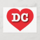 Este cartão-postal contém um coração vermelho vibrante contendo as letras maiúsculas, em negrito, branco, DC, abreviação oficial do Distrito de Colúmbia. O reverso do cartão postal é vazio, aguardando seus sentimentos manuscritos ou texto personalizado.