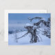 Cartão postal de pinheiro congelado com aparência de uma alienígena de madeira.