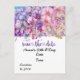 Celebre seu próximo aniversário com estilo com este Cartão Postal Save the Date de Flor de Orquídea. Com delicadas orquídeas pintadas à mão em tons suaves de lavanda, rosa e branco, este design elegante captura a beleza e a graça da natureza, definindo o tom perfeito para o seu dia especial. Quer você esteja planejando uma reunião íntima ou uma grande celebração, este cartão postal floral informará aos seus convidados que marquem suas agendas para a próxima ocasião. O design de orquídea atemporal lhe dá um toque sofisticado e luxuoso, tornando-o um souvenir inesquecível para seus convidados.