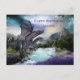Um cartão postal com uma paisagem de fantasia com dragão, com seus próprios textos. Bonita para o aniversário de uma criança ou outra ocasião.