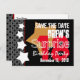 18º Salve a Data de Aniversário Moderno A08 Vermelho Branco e Preto com Estrelas Douradas e Brancas.