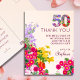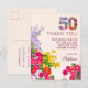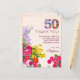 50º aniversário do cartão postal da festa floral moderna de 50 anos. Celebre um aniversário marcante com este belo cartões de agradecimentos de 50 anos, com sotaques florais vibrantes e um elegante gráfico "50". Este cartão oferece uma maneira sincera de expressar gratidão aos amigos e à família pela sua presença e pelos presentes generosos nesta ocasião especial. A borda floral adiciona charme, enquanto o texto personalizável garante um toque pessoal. Ideal para aqueles que querem uma maneira memorável e elegante de dizer "obrigado" depois de uma comemoração de 50 anos. Aproveite!