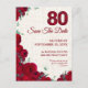 Celebre 80 anos maravilhosos com este elegante cartão "Salve a Data", com peões vermelhos arrojados e nádegas ranóticas num fundo de lineno mole. O grande "80" floral e o guião fluido adicionam um toque de charme. Todo texto é totalmente personalizável. Um design de coração, fotografado com amor para dar o tom para um marco verdadeiramente especial. Aproveite!