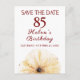 Compartilhe a alegria de 85 anos notáveis com este elegante cartão floral Salve a Data. Apresentando um delicado florescimento amarelo e um layout moderno e limpo, este design é perfeito para festas de jardim ou celebrações íntimas de marco. Totalmente personalizável com seus detalhes. Aproveite!