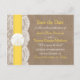 A coleção de casamentos de areia amarela é um design impressionante que apresenta um adorável fundo de efeito de burvolta rústico com uma trim romântica de efeito de renda branca vintage terminada com um incrível dólar de areia e fita amarela. Estes cartões postais podem ser personalizados para sua ocasião especial e farão o anúncio perfeito para seu casamento. *Observe que o Zazzle só vende produtos impressos para que este item não tenha nenhum material real de burlap, renda, dólar de areia ou fita.