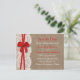 A coleção de casamento ruidosa de arco vermelho é uma design impressionante que apresenta um adorável fundo de efeito de burvolta rústica com um romântico efeito de renda branca vintage e um espantoso arco vermelho. Estes cartões postais podem ser personalizados para sua ocasião especial e farão o anúncio perfeito para seu casamento. *Observe que o Zazzle só vende produtos impressos para que este item não tenha nenhum material real de burlap, rendas ou fita/ arco.