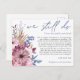 Quando as circunstâncias infelizmente significam que você precisa adiar o seu casamento, este cartão-postal conveniente permitirá que você informe seus convidados. Nós Ainda Nos Casamos está escrito em um elegante tipo de letra em azul empoeirado no topo e o resto do texto na frente e no verso que você pode facilmente personalizar. Florais modernos em rosa e lilás e folhagens azuis estão à esquerda do texto à direita, e um motivo floral coordenado também está no verso.