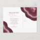 Nem todos os designs de casamento são criados iguais. Os layouts assimétricos para as peças neste impressionante conjunto de casamento provam que isso não é ruim! Bandas onduladas de cor em tons de burgundy a rosado macio e cinzas com um centro de cristal brilhando formam um sotaque geode/agate na maioria das peças do conjunto. O postal do casamento 'Obrigado' mostrado aqui mostra o acima mais uma modelo para adicionar sua mensagem pessoal, nomes e data do casamento. O reverso apresenta um fundo de abstrato de coordenação que lembra a pedra vedada com brilho. Procure ID647 para ver todas as peças de coordenação neste conjunto.