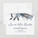 Cartão de anúncio de Natal com água azul de inverno, cartão de salvar a data, apresentando um fundo branco clássico, modelo moderno editável que é facilmente personalizável. Todos os estilos de fonte e cor de fundo podem ser alterados facilmente clicando no link personalizar ainda mais após a personalização.