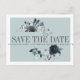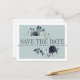 Projetado para coordenar com nossa coleção de casamentos florais de "Algo Azul", cercado por delicadas flores pintadas de azul, branco e marfim e penas esta design é atraente e muito bonita. Moderno e simples, salve o cartão-postal da data aparece no centro entre a folhagem e um cartão-postal da modelo está no verso. Todos os estilos de texto, cores, tamanhos também podem ser modificados para ajustado de suas necessidades Para obter ajuda ou solicitação personalizada (sem encargos), entre em contato conosco em citronelladesign@gmail.com ou visite nossa loja