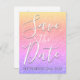 Save the Date Festa de Aniversário Falso Brilho e Glitter Dourado, Roxo e Rosa Cartão Postal Ombre Arco-íris Pastel perfeito para Festa de Aniversário, Festa de Aniversário de Casamento, Chá de Bebê ou Casamento.