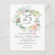 Com uma delicada grinalda floral em aquarela, este cartão de mudança de data de aniversário de casamento de 25 anos botânico elegante pode ser personalizado com as suas informações de aniversário de prata especiais. O verso apresenta uma grinalda floral correspondente emoldurando as suas datas de aniversário em texto branco elegante sobre um fundo prateado. Concebido por Thisisnotme©
