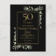 Com folhas de folhagem de aquarela de jardim campestre em um fundo preto com os detalhes da mudança da data do seu aniversário de 50 anos definidos em texto dourado moderno. Projetado por Thisisnotme©