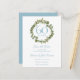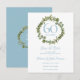 Um elegante cartão de save the date de aniversário de casamento de 60 anos com flores pode ser personalizado com as suas informações especiais de aniversário de diamante. O verso apresenta uma grinalda de verde floral combinando, emoldurando as datas do seu aniversário em texto branco elegante em um fundo azul diamante. Concebido por Thisisnotme©
