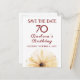 Celebre um marco com estilo com este elegante cartão de 'save the date' de aniversário de 70 anos floral. Com flores quentes de outono, tipografia refinada e um layout atemporal, ele define o tom para uma alegre celebração de outono. Perfeito para familiares e amigos marcarem com antecedência a ocasião especial. Totalmente personalizável com seus detalhes. Aproveite!