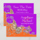 Cartão Postal De Anúncio Aniversário de noivado de aniversário laranja roxo