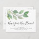 Este cartão postal de anúncio de mudança elegante é decorado com folhagem simples em tons de verde pintada à aguarela.