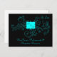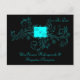 Cartão Postal De Anúncio Aqua Preto Monograma Floral Ondas Salvar Data