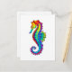 Articulação artificial, brilhante, arco-íris, cavalo de mar poligonal sobre fundo branco. Tatuagem brilhante.