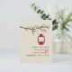 Um cartão-postal de casamento ao ar livre para salvar a data com um tema de selva / acampamento com uma ilustração de uma lâmpada de óleo vermelha pendurada num ramo de árvore sempre verde. Personalize o texto com as suas informações.