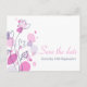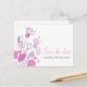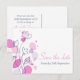 Um belo e simples contorno de ameixa roxa e marinho azul, e pétalas gráficas salvam o cartão postal do casamento. Parte do jogo gráfico moderno de casamentos de pétalas de flores. Uma elegante design exclusiva de Sarah Trett.