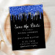 Convide seus amigos e família para comemorar seu dia especial com esses pingos de brilho preto, prata e azul para salvar a data do convite de casamento. Personalize com seus nomes e todas as suas informações de casamento. Esta coleção temática de casamento e polícias da polícia será favorita entre todos os policiais, esposas policiais e polícias. COPYRIGHT © 2020 Judy Burrows, Black Dog Art - Todos Os Direitos Reservados. O Cartão-Postal De Anúncio Do Elegante Blue Silver Glitter Guarda A Data