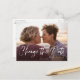 Precisa adiar sua data de casamento? Nossa mudança moderna é a data em que os cartões postais do adiamento do casamento são perfeitos para ajudá-lo a notificar os convidados da sua nova data de casamento. O na moda altera os recursos do cartão postal de data "Change the Date" em uma sobreposição branca de script de pincel com sua foto horizontal do noivado. Personalize o postal adicionando seus nomes, endereço de devolução, detalhes do casamento, site do casamento, etc.