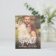 Anuncie sua "atualização da data do casamento" em estilo com estas simples e modernas versões revistas salvem os postais de lançamento da data que apresentam sua foto de noivado com um design de sobreposição de script rugoso. Inclui texto na frente e no verso do cartão postal que pode ser personalizado com todos os detalhes importantes. Nota, o filtro de gradiente de foto escura pode ser removido.
