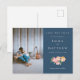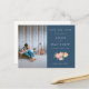 Cartão Postal De Anúncio Azul Atemporal Floral - QR & Foto
