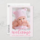 Cartão Postal De Anúncio Bem-vindo a nova Rosa claro de lançamento do bebê