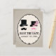 Um bigode gráfico atrativo e divertido e o chapéu superior salvam a placa de data. Personalize este cartão com sua própria mensagem. Você pode mudar sua fonte. Este cartão funcionará para festas de todos os tipos; aniversário, aniversário, casamento, noivado, danças, bolas, angariadores de fundos e muito mais. Use isto para salvar o cartão de data ou outro anúncio, vendas e muito mais.