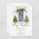 Celebrate your first holiday season in your new home with this elegant Merry Christmas From Our New Home card. Featuring a hand-painted watercolor blue front door decorated with festive garlands, wreaths, and potted evergreens, this design perfectly blends cozy charm with timeless sophistication.